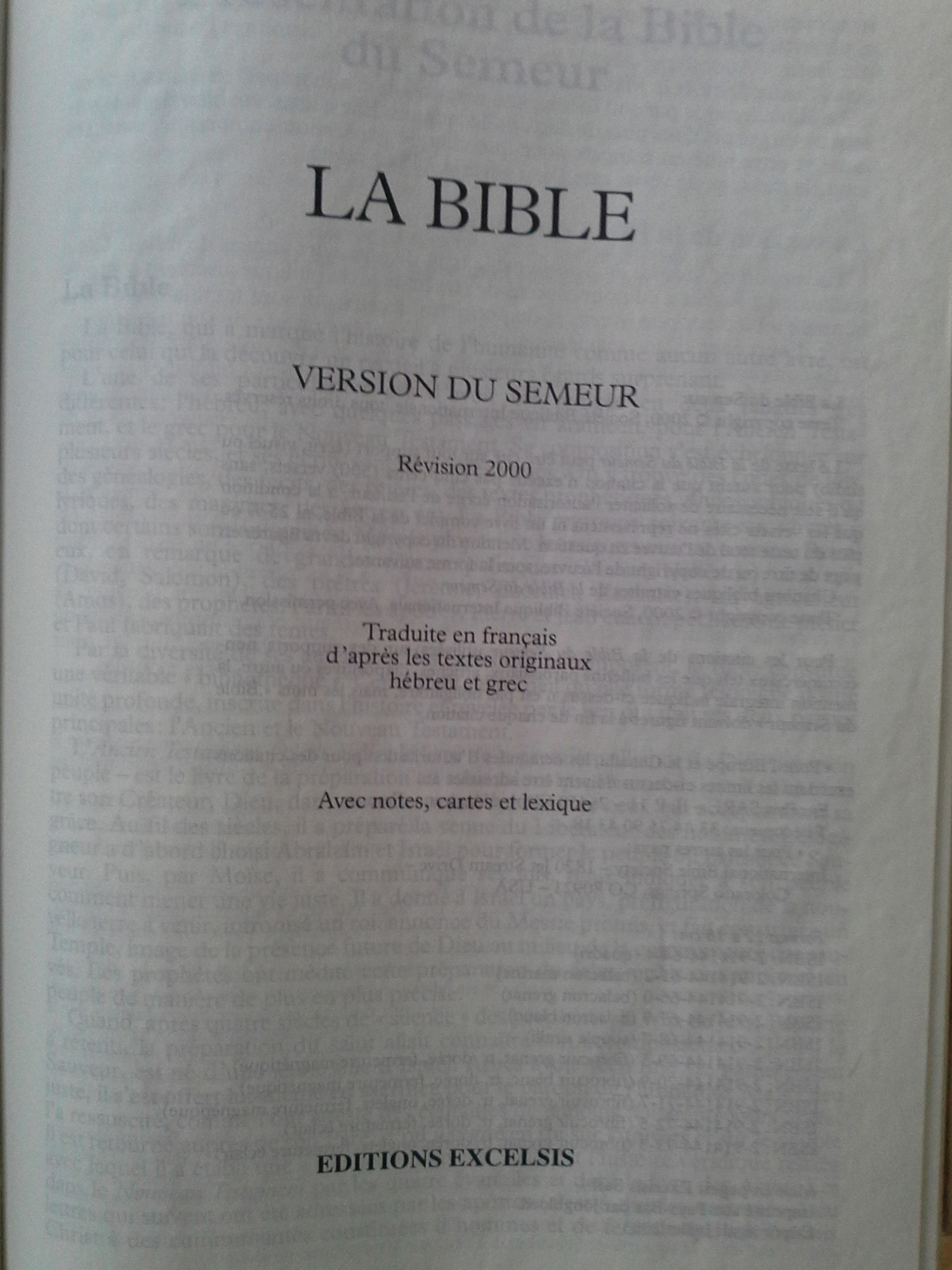 3) La Bible du semeur : Dieu, le Fils unique