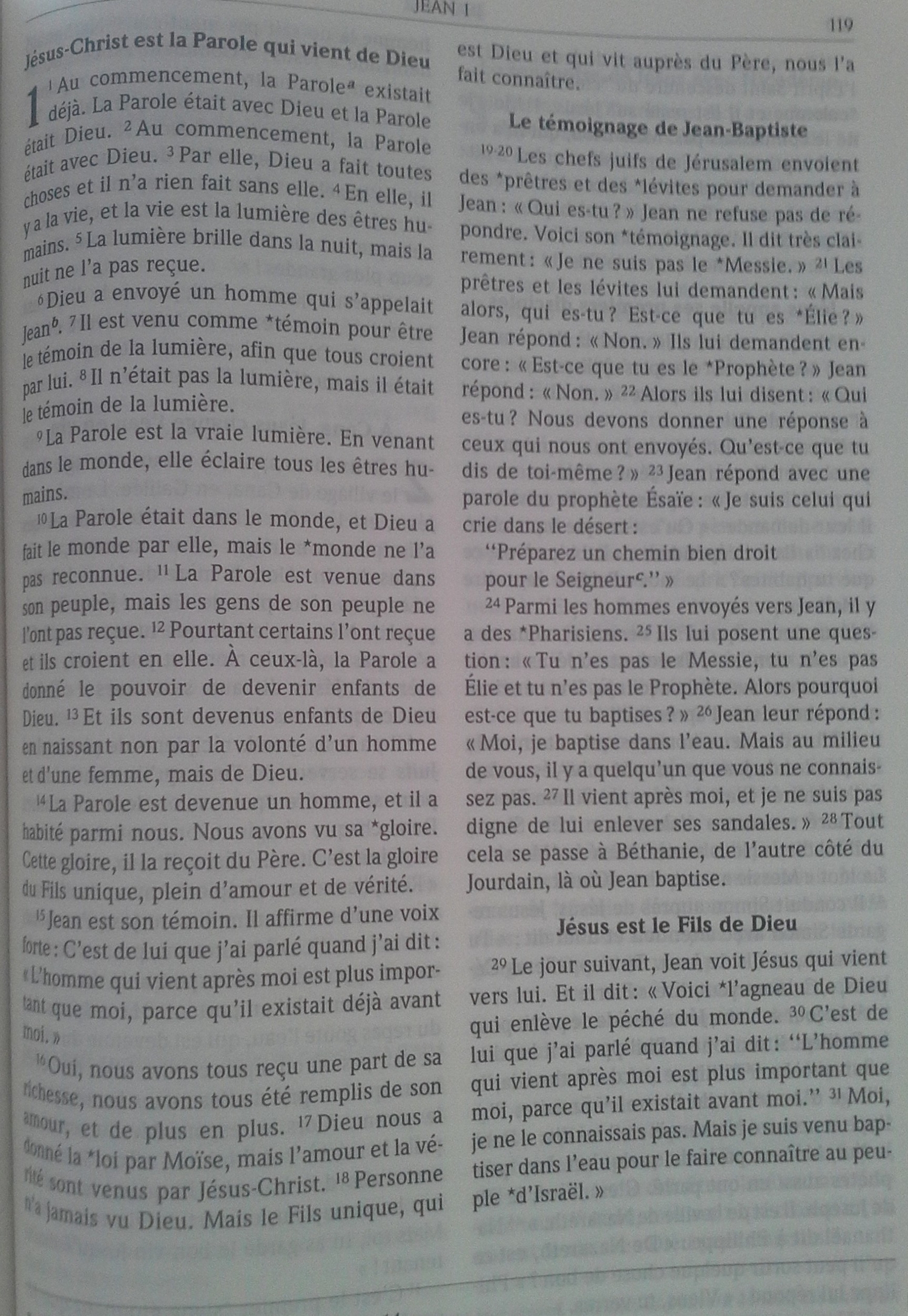 5) La Bible " Parole de Vie " : le Fils unique, qui est Dieu