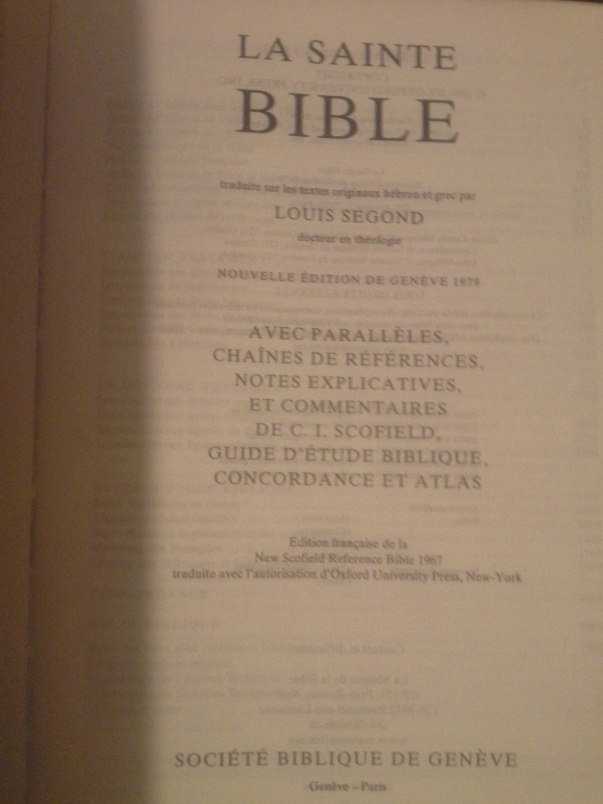 1) La Bible Louis Segond - Edition de Genève 1979 : Dieu le Fils unique