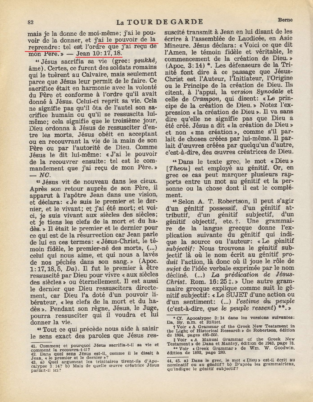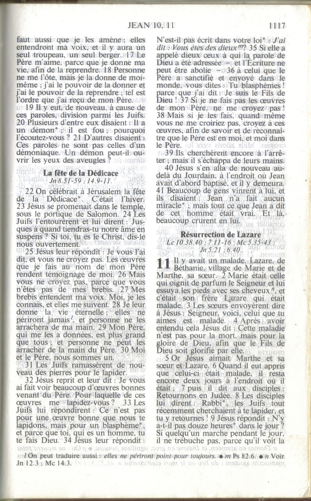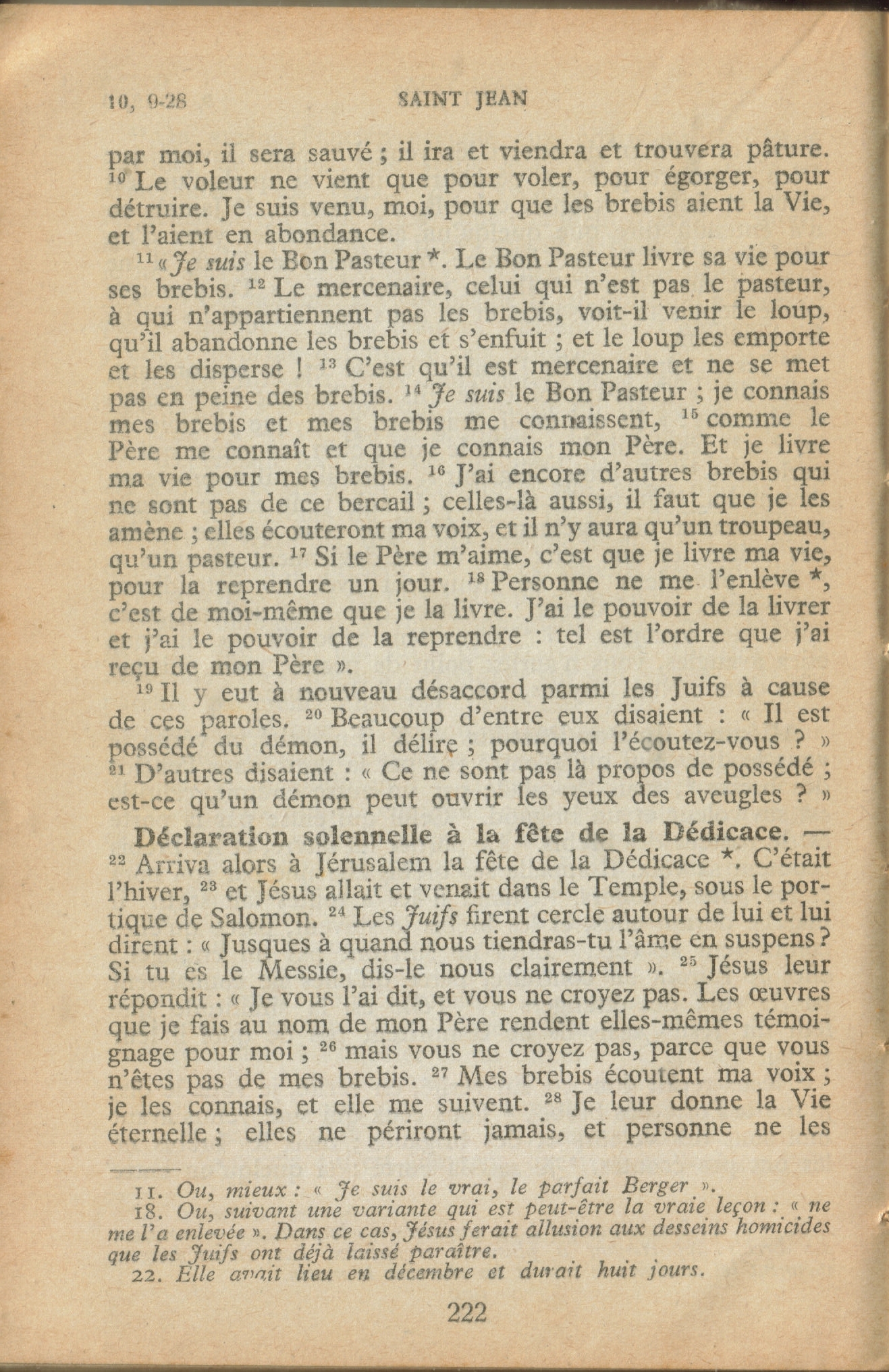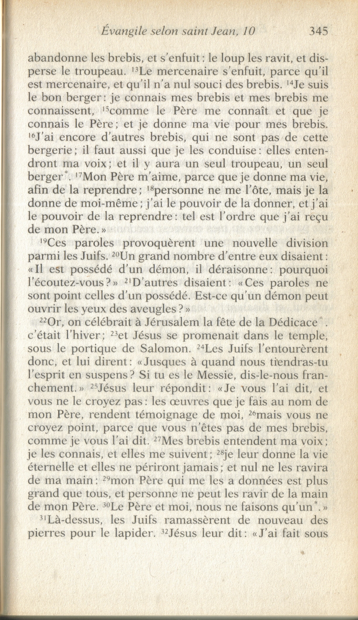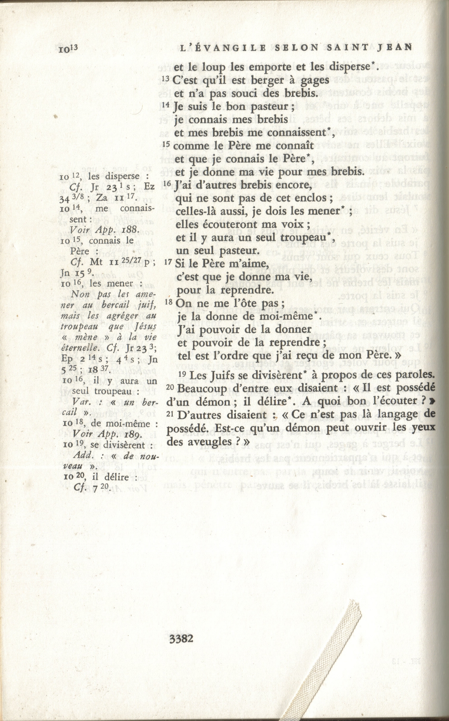 - N.T. (Annoté) par le T. R. Père Buzy - édition 1949 : « C'est pour ceci que le Père m'aime, parce que je donne ma vie, toutefois avec [pouvoir] de la reprendre. 18 Personne ne peut me l'enlever, c'est de mon propre gré que je la donne. J'ai le pouvoir de la donner et le pouvoir de la reprendre … 📘 📖