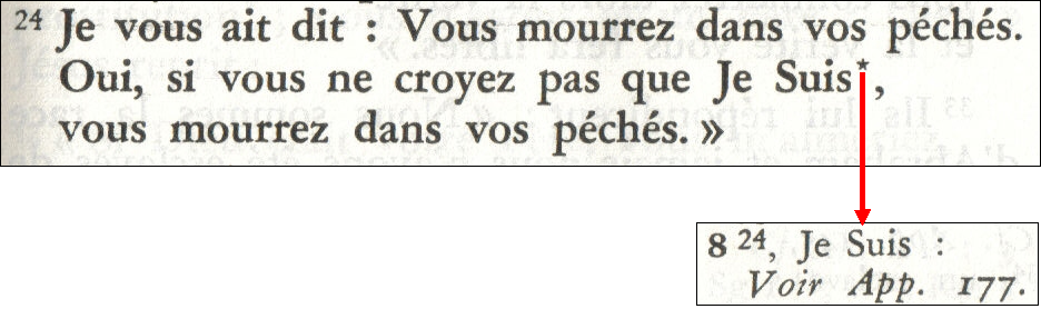- En vérité, en vérité je vous le dis, avant qu'Abraham fût, Je Suis. (La St Bible du Club Français du Livre 1956)