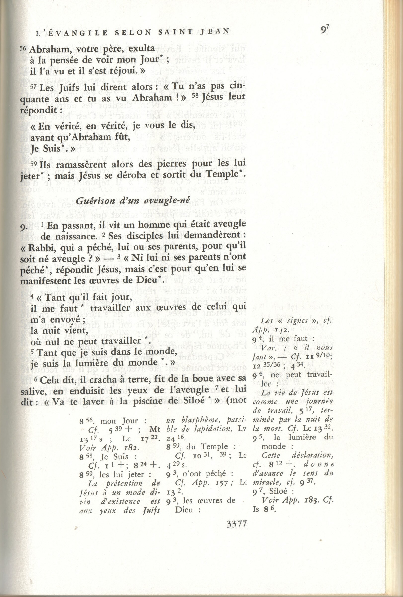 - En vérité, en vérité, je vous le dis, avant qu'Abraham ne fût, je suis. (NT Annoté, Père Buzy - édition 1949)
