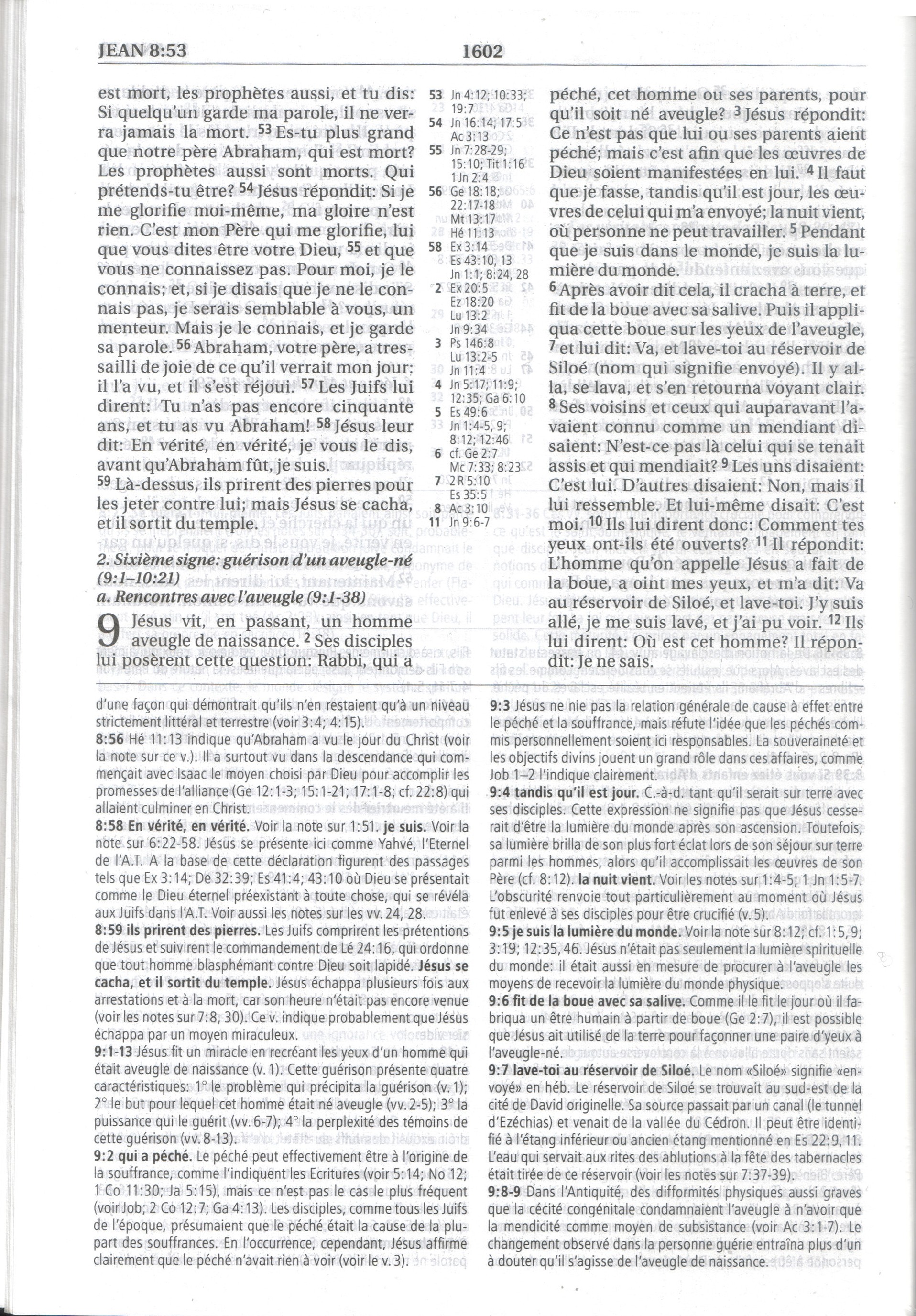 - Jésus leur dit: En vérité, en vérité, je vous le dis, avant qu'Abraham fût, je suis. (La Sainte Bible avec commentaires de John MacArthur.)