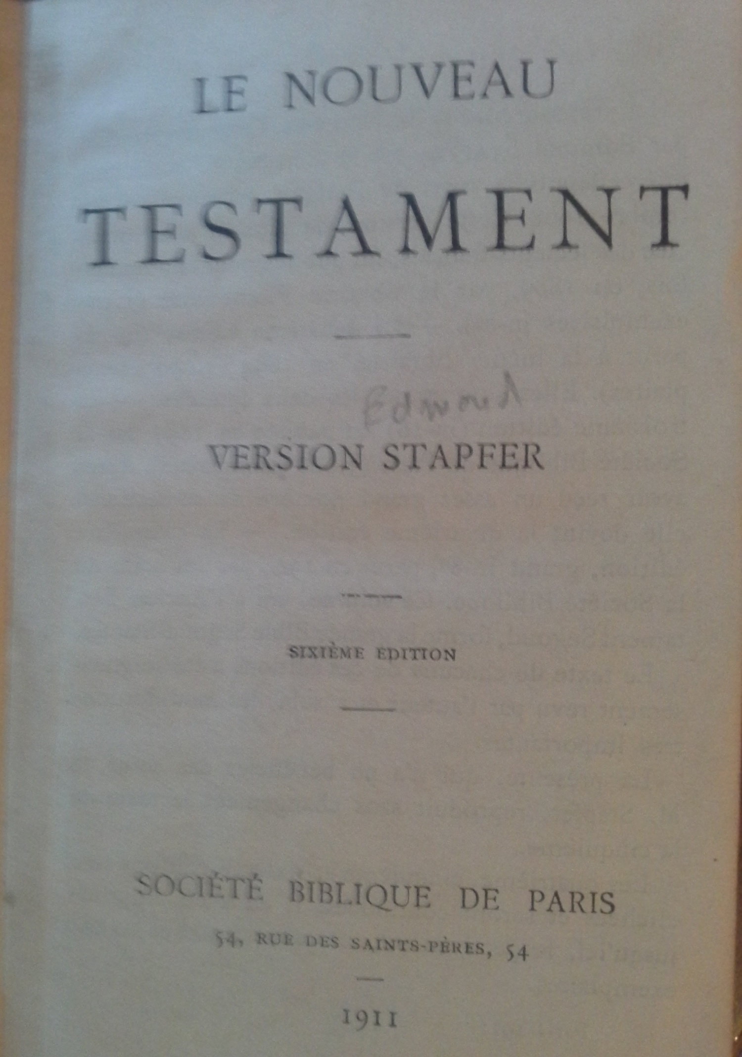 9) Le Nouveau Testament d'Edmond Stapfer :
