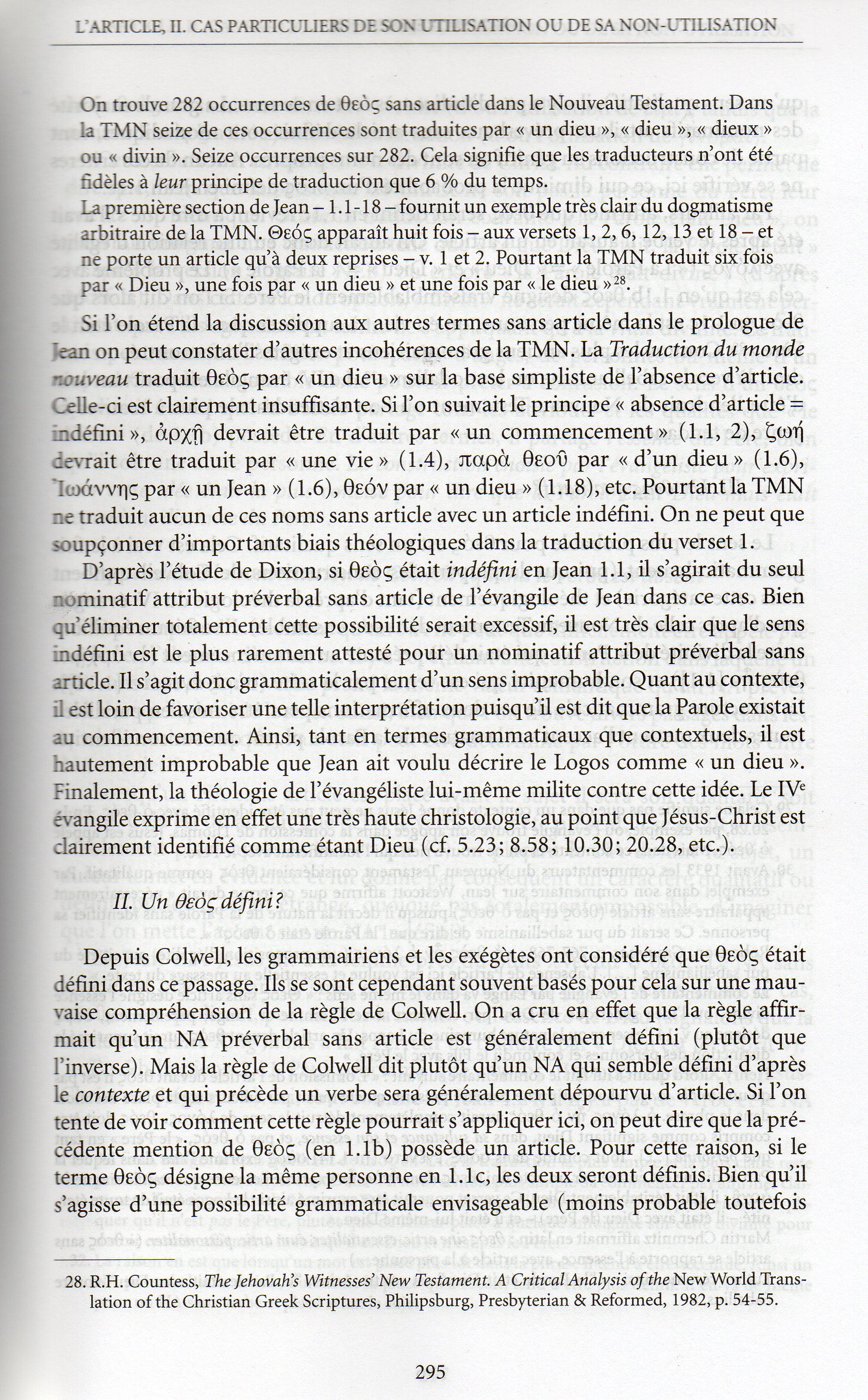 28. R.H. Countess, The Jehovah's Witnesses' New Testament. A Critical Analysis of the New World translation of the Christian Greek Scriptures, Philipsburg, Presbyterian & Reformed, 1982, p. 54-55.