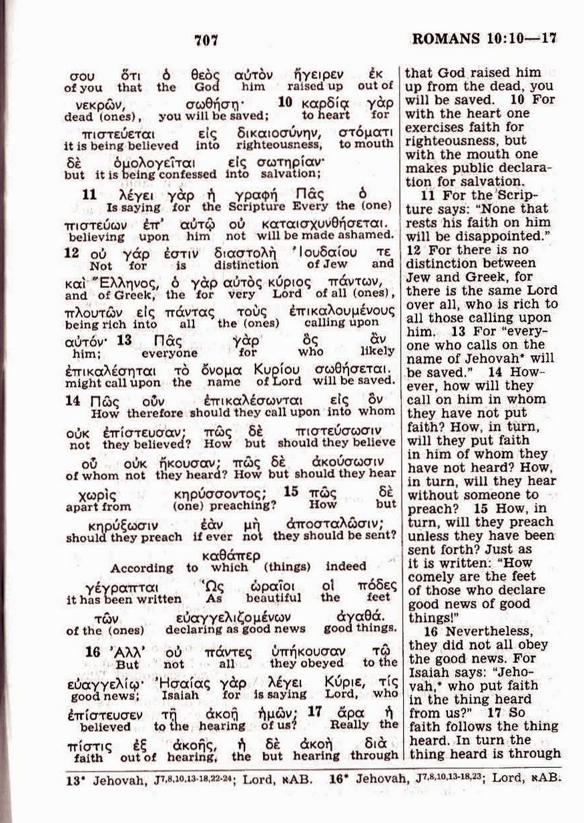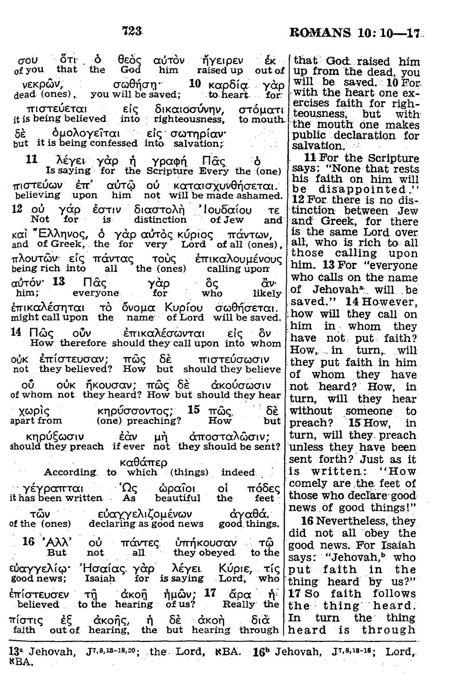 Même chose dans la traduction interlinéaire du Royaume des témoins de Jéhovah (KIT pages 723 et 724) :