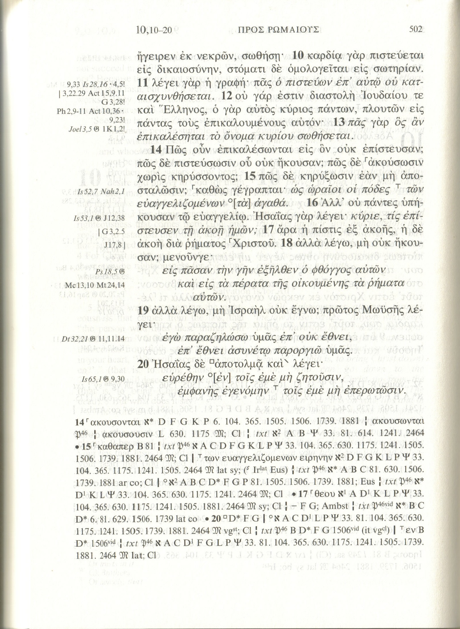 1) GNT (Texte Grec) : ἄρα ἡ πίστις ἐξ ἀκοῆς, ἡ δὲ ἀκοὴ διὰ ῥήματος χριστοῦ.