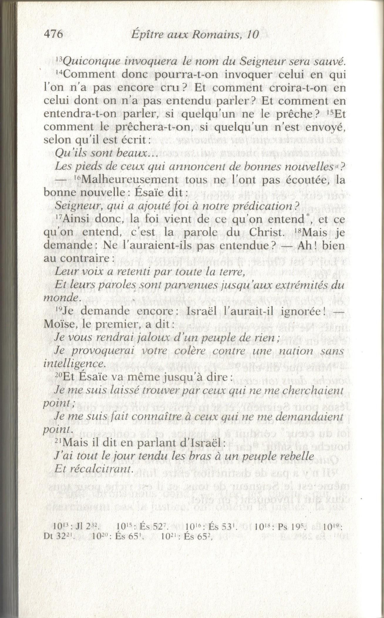3) TOB (En haut à gauche) : Ainsi la foi vient de la prédication et la prédication c'est l'annonce de la parole du Christ