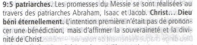Ainsi, dans la Bible du Centenaire, le commentaire de Romains 9:5, rappelle et proclame la divinité de Jésus.