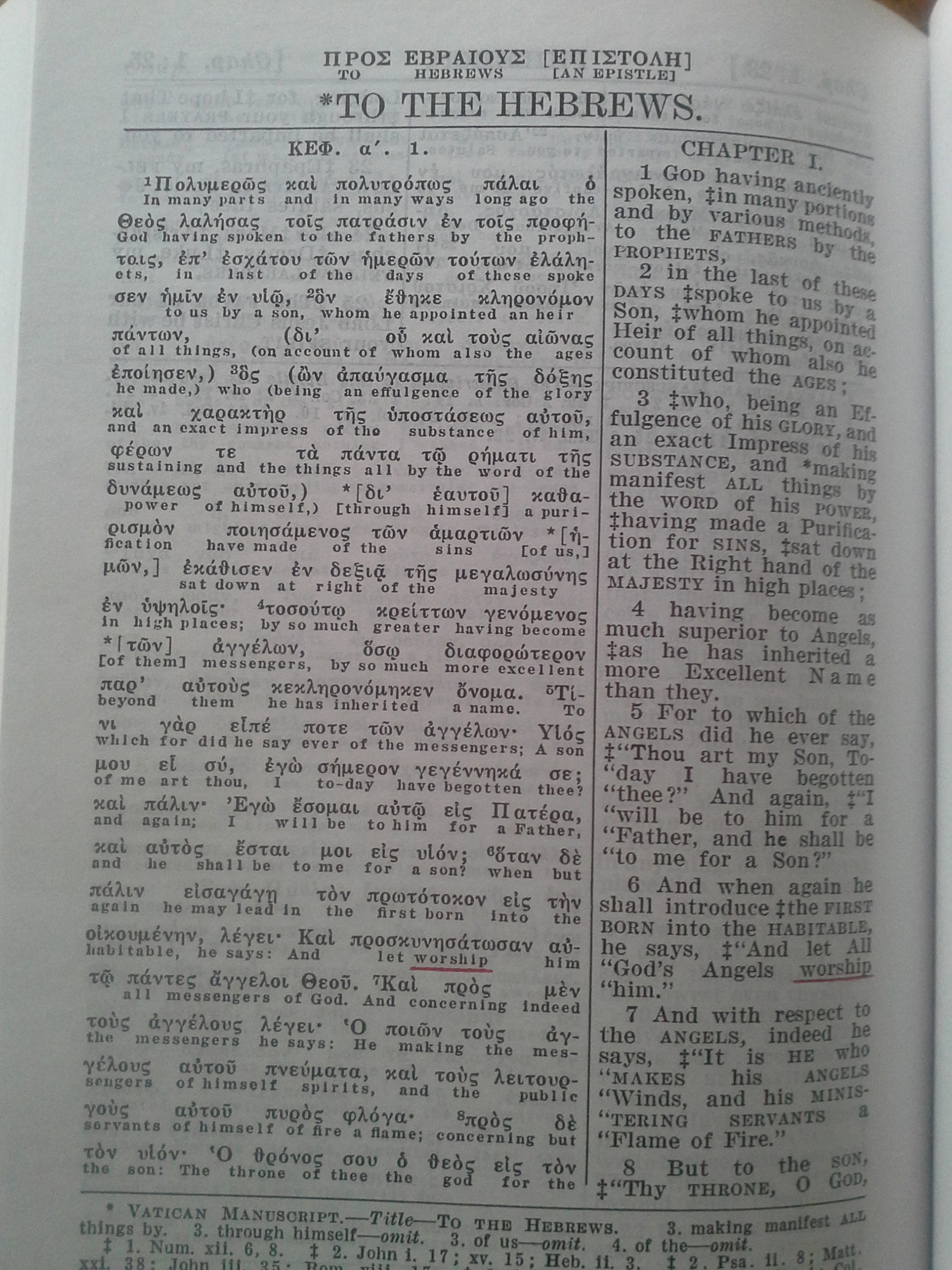 Et que lisons-nous en Hébreux 1:6 dans la Diaglott ?