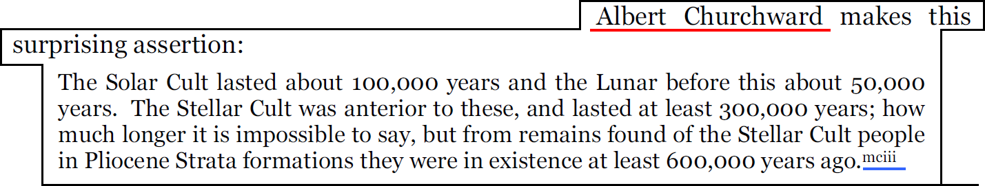 ⚠ On remarque qu'il y a la lettre "J" comme James Churchward (frère d'Albert Churchward). Mais la référence source mène au livre d'Albert.