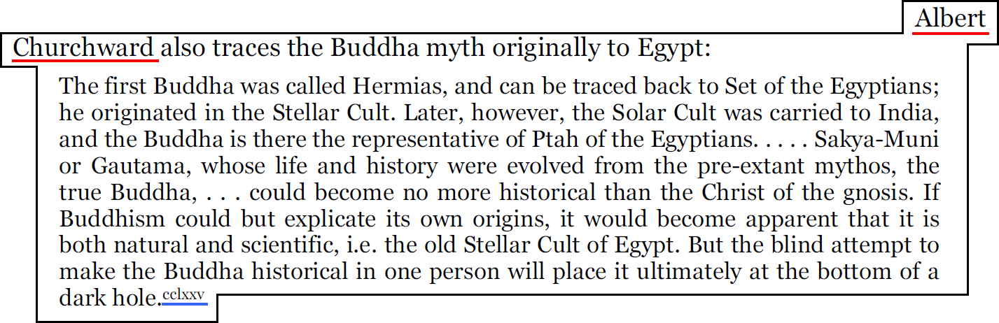 Albert Churchward était un auteur maconnique. Son frère James est un occultiste qui a également été cité par Acharya : Wikipedia