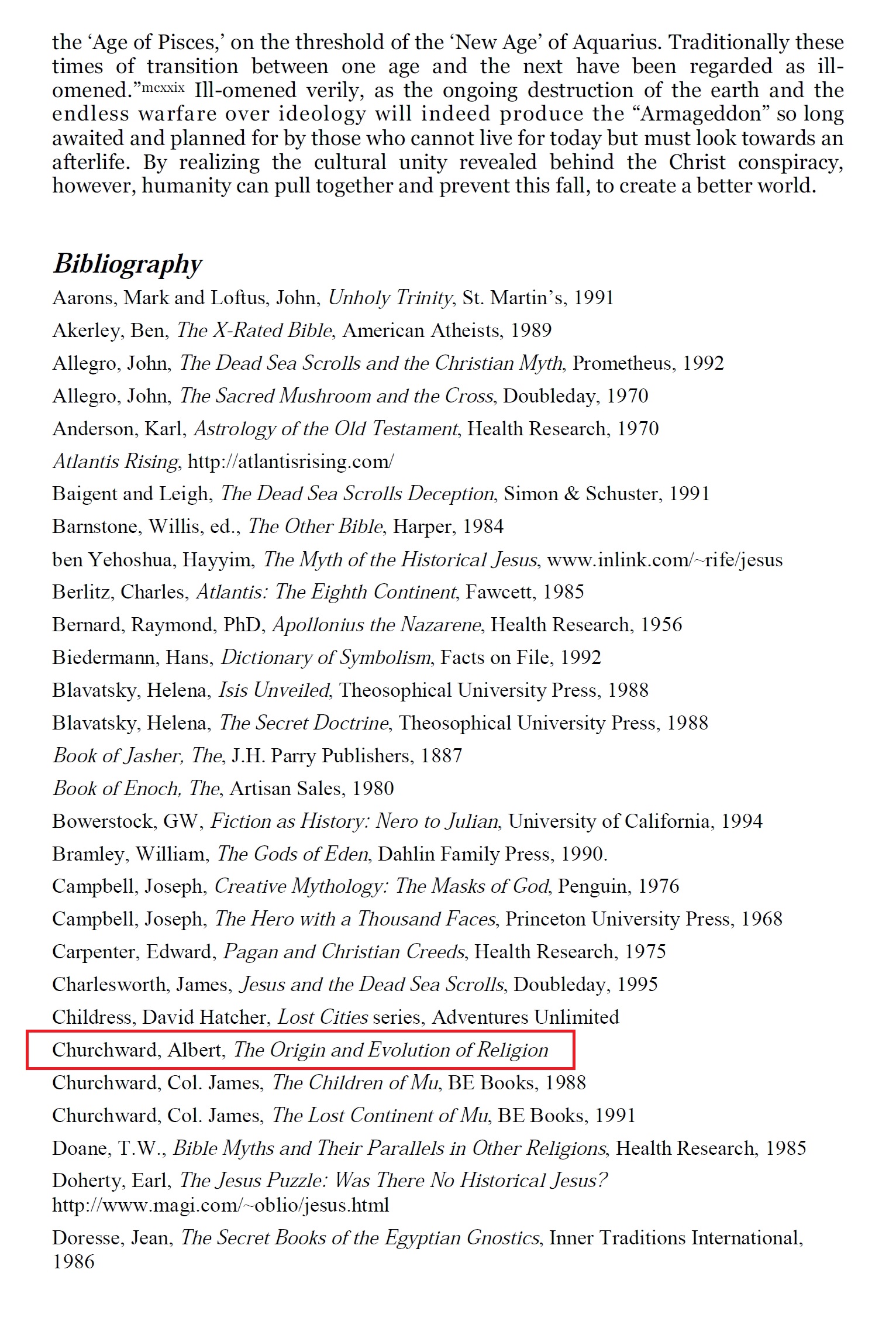Albert Churchward cité 45 fois par Acharya S
