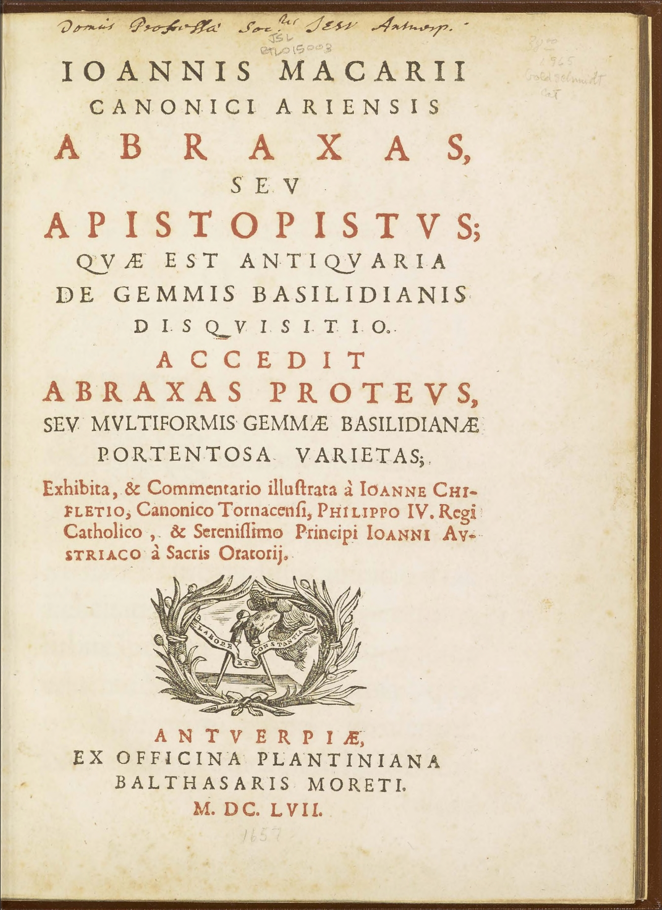 ➜ Calcedonius = Calcédoine | LEOPOLDI. GVIL. fait référence à Léopold-Guillaume de Habsbourg