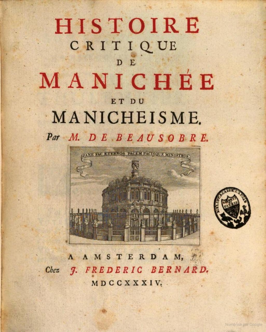 ➜ Cette page 23 nous conduit à Histoire critique de Manichée et du Manicheisme, Volume 1, page 56