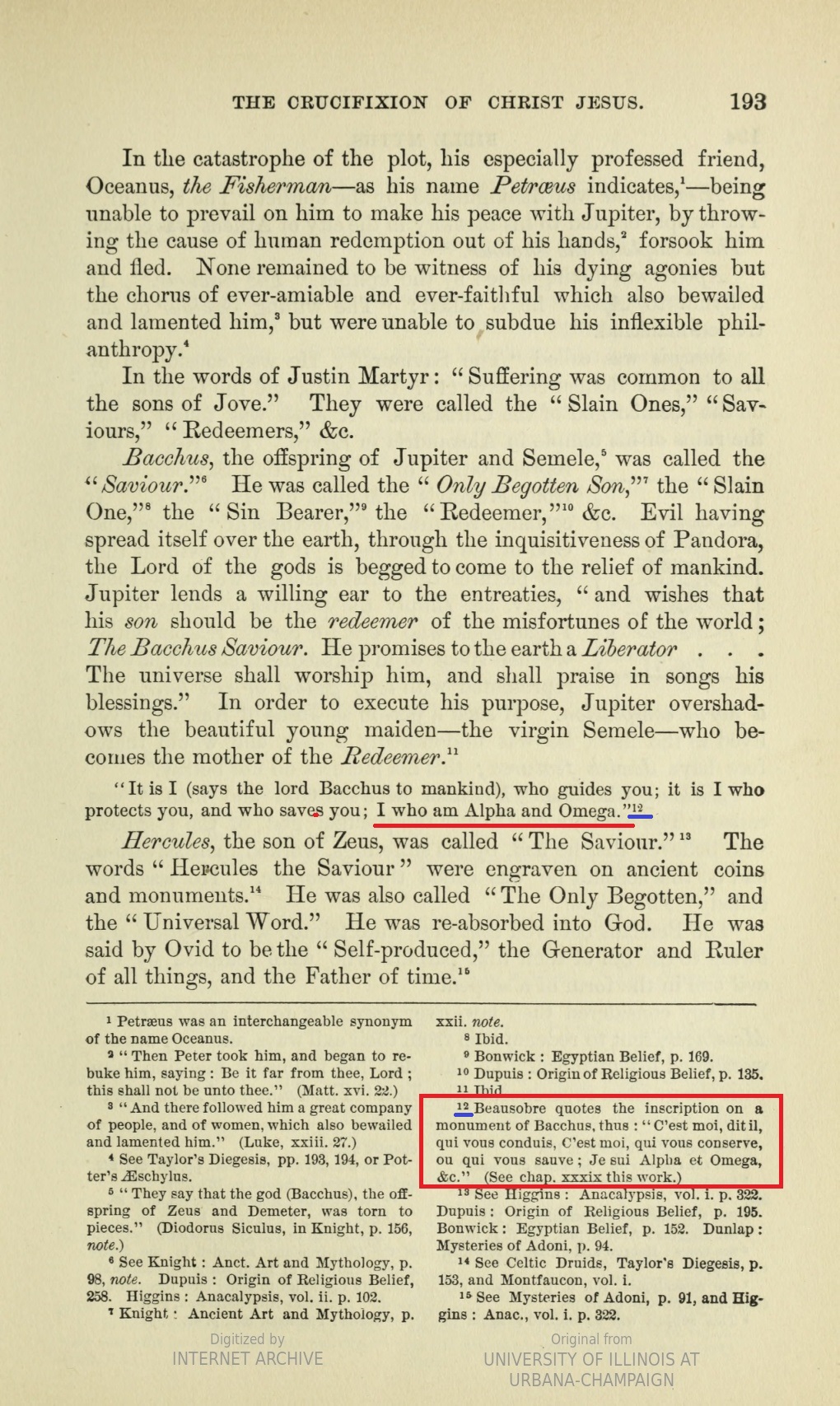 ➜ Cette page 193 contient une mention de l'Alpha et l'Oméga, à laquelle est jointe une note [n°12] en bas de page.
