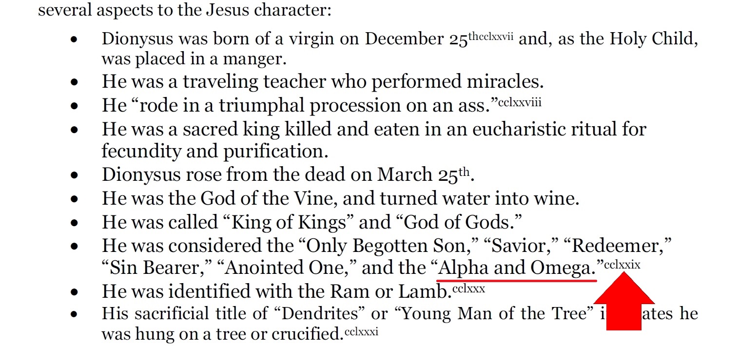 ➜ The Christ Conspiracy (p. 81) renvoie ainsi “Alpha and Omega”cclxxix