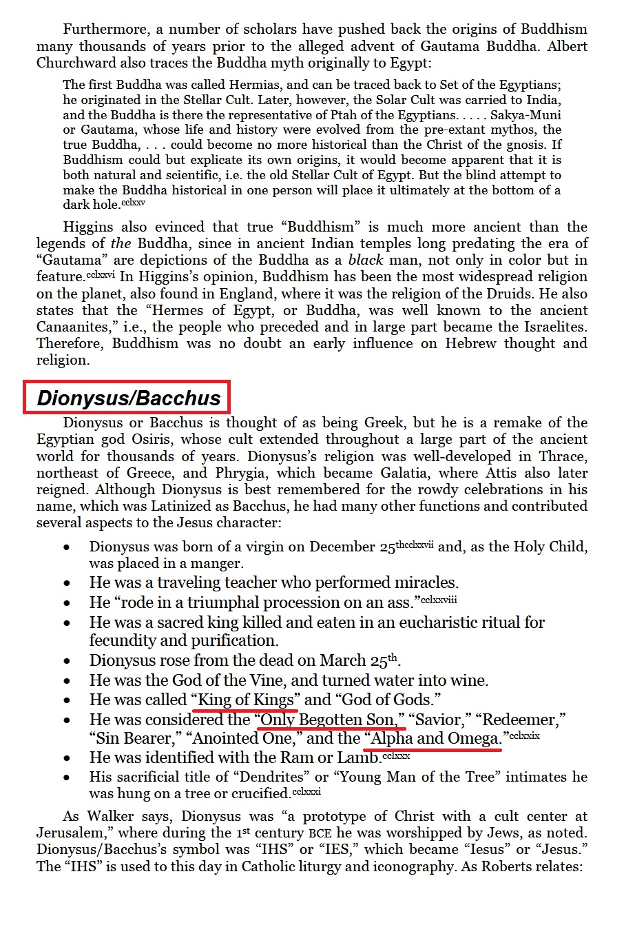 Au-dessus vous pouvez voir les 3 titres qui ont été repris et cités dans le même ordre par Peter Joseph. Ce livre mythiste applique à Dionysos trois titres du Christ. Voyons ça de plus près :