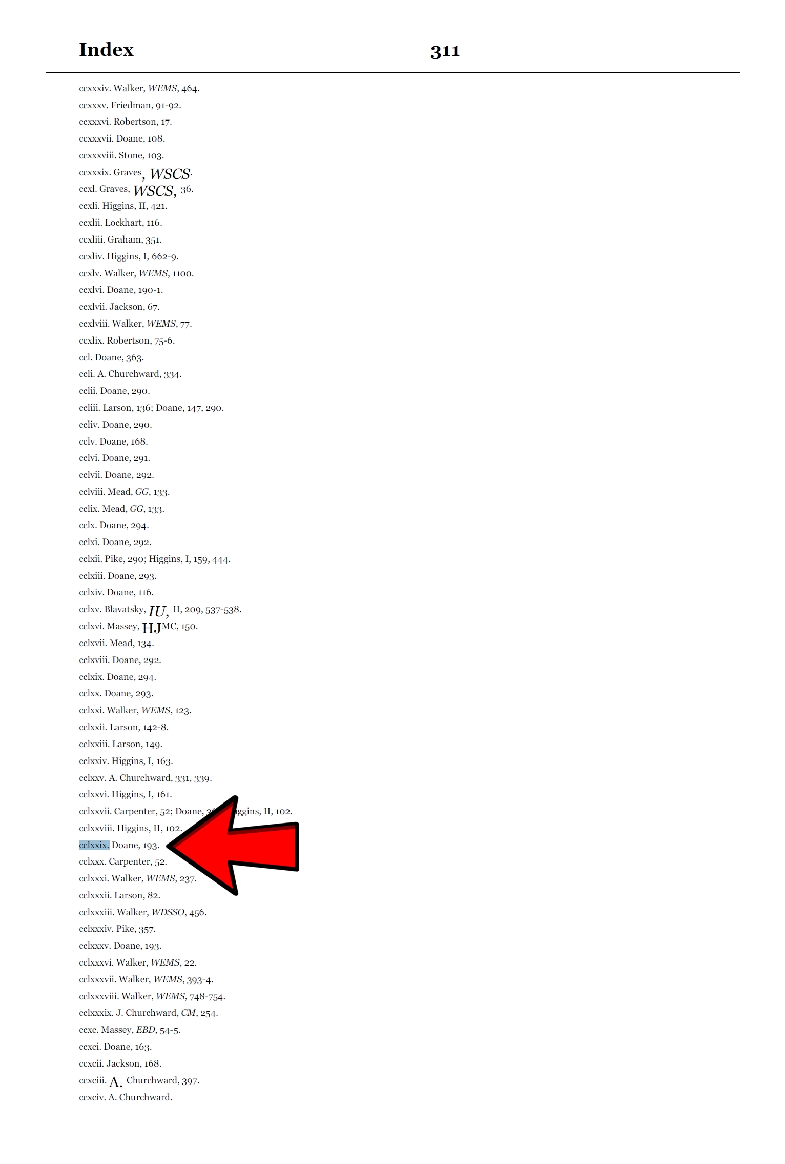➜ La référence cclxxix (279) nous conduit à Doane, 193 (index page 311)