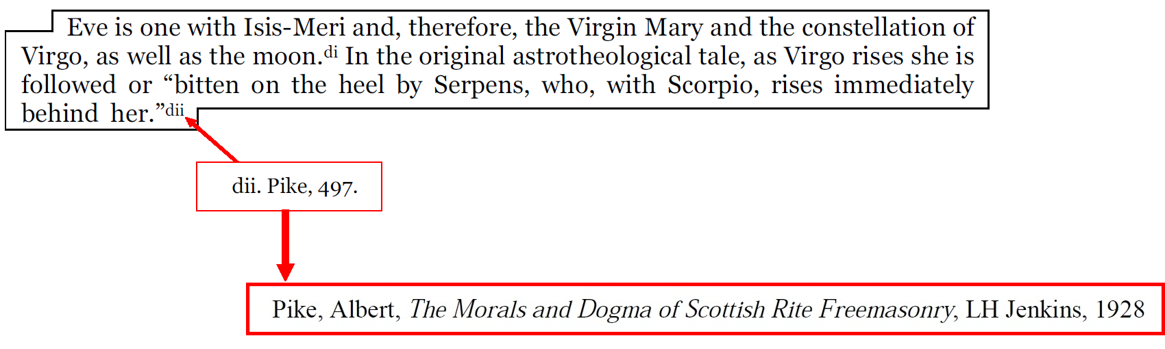 C'est ce livre satanique et maçonnique d'Albert Pike « The Morals and Dogma of Scottish Rite Freemasonry » qui a été cité 26 fois par Acharya S.