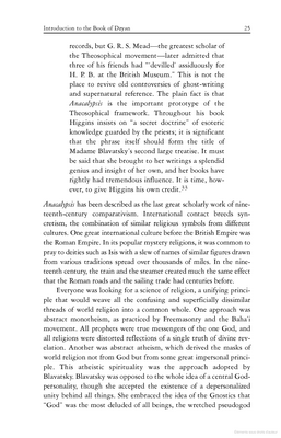 Le fait qu'Helena Blavatsky à développé la théosophie à partir de l'oeuvre du franc-maçon Godfrey Higgins est confirmée dans la préface du livre « The Book of Dzyan », aux pages 24 et 25.
